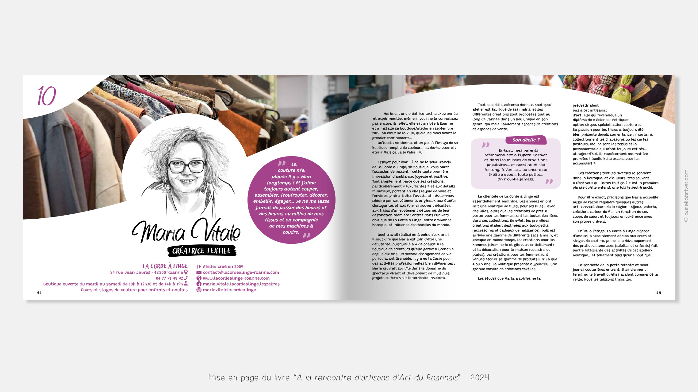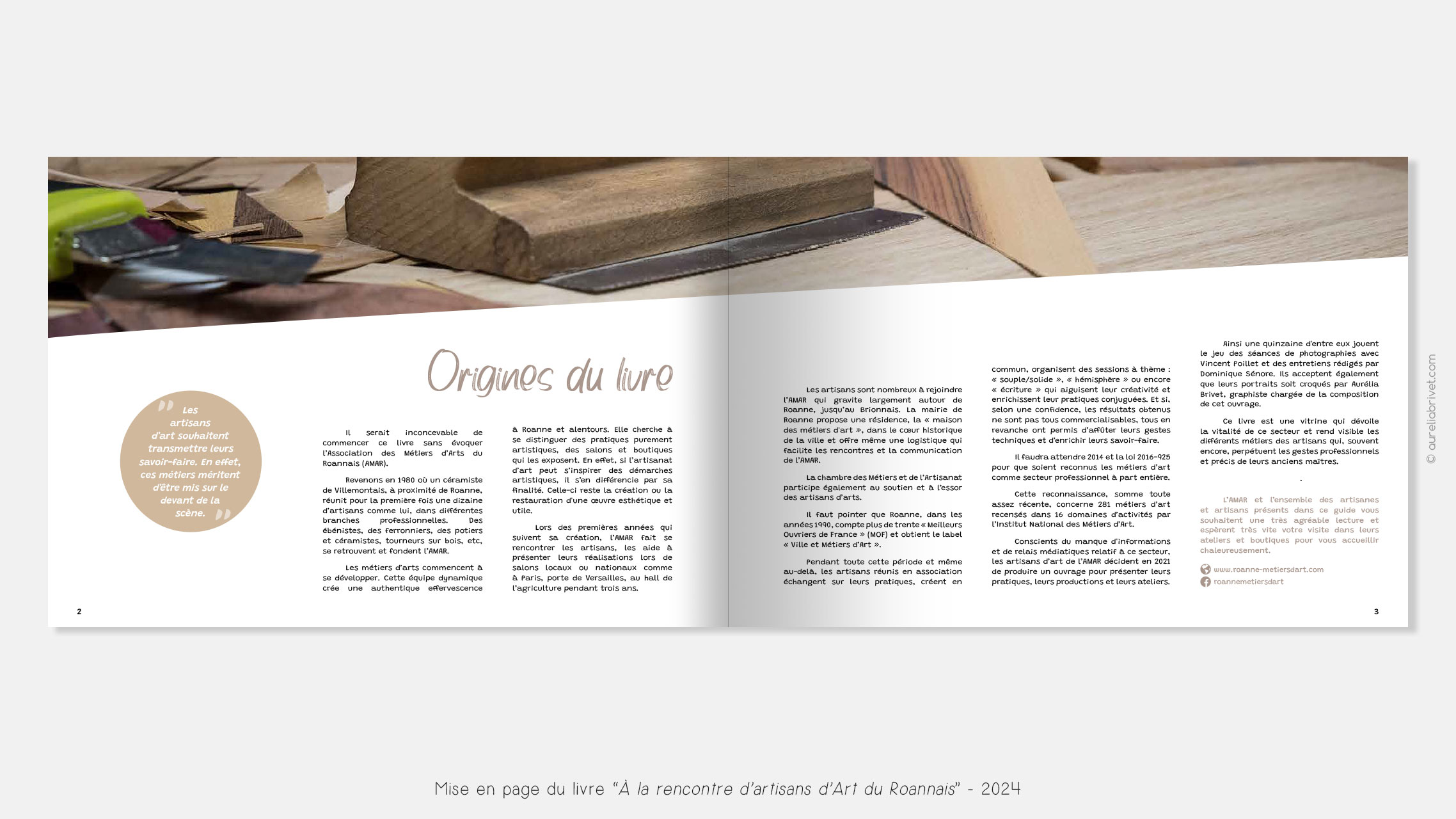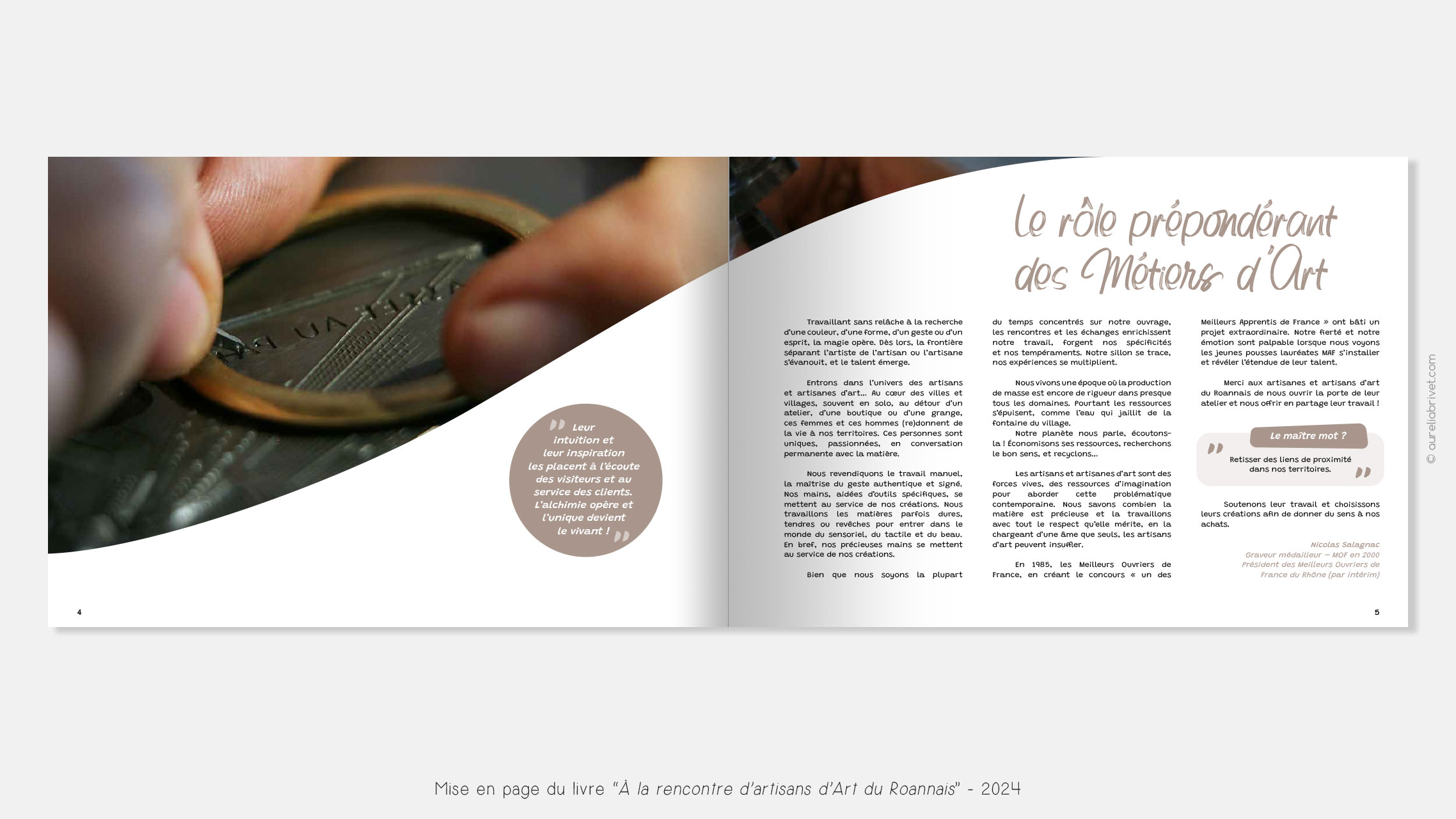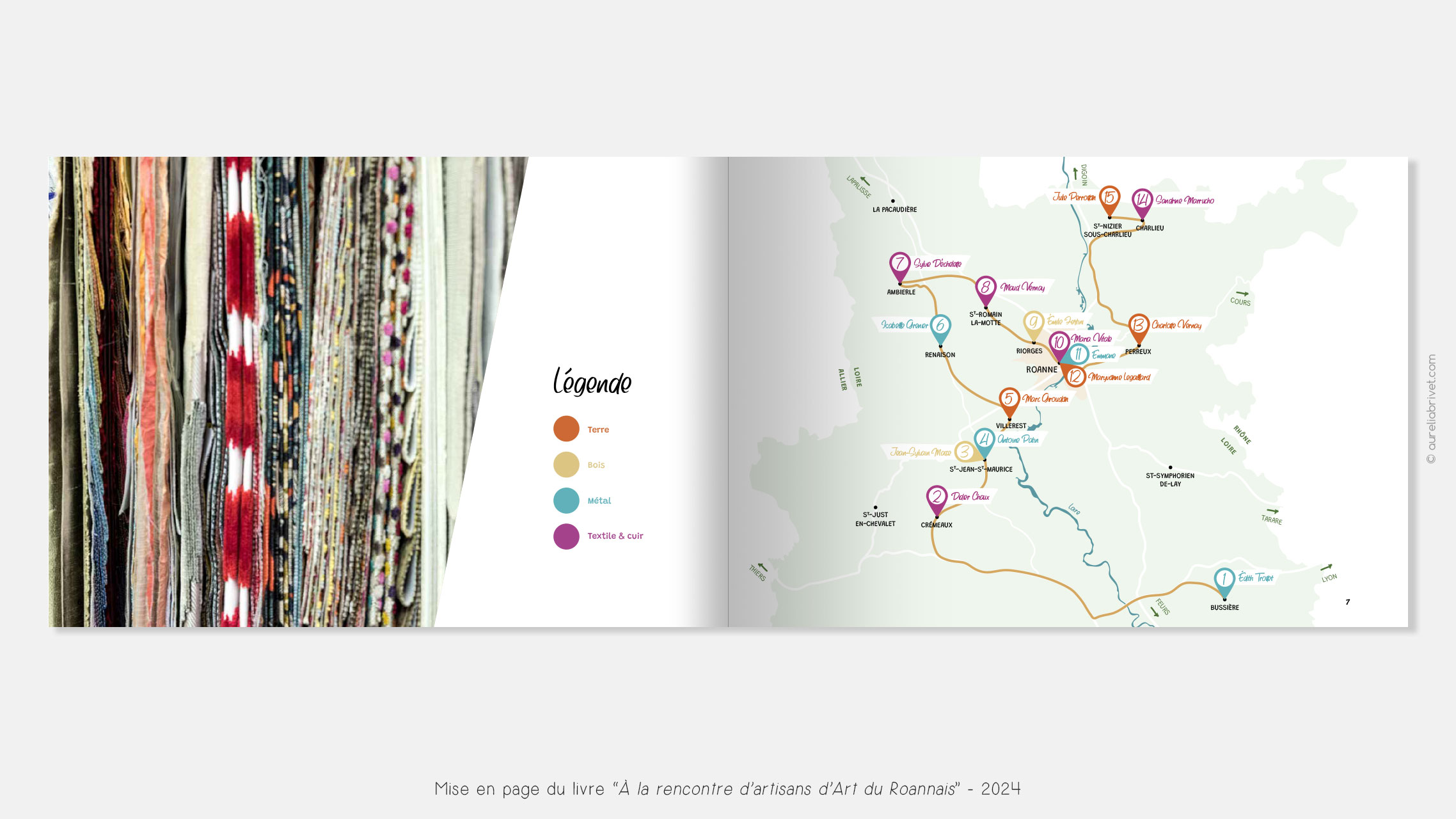 Mise en page et illustrations d’un livre présentant des artisans d’art du Roannais